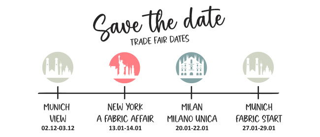 Knopf & Knopf International ist regelmäßig auf den wichtigsten Branchenveranstaltungen vertreten. Überzeugen Sie sich persönlich von der Qualität unserer Produkte und der Vielfalt unserer Kollektionen. Hier treffen Sie uns: