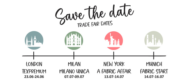 Knopf & Knopf International ist regelmäßig auf den wichtigsten Branchenveranstaltungen vertreten. Überzeugen Sie sich persönlich von der Qualität unserer Produkte und der Vielfalt unserer Kollektionen. Hier treffen Sie uns:
